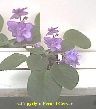 pale-lavender flowers are blushed with sky-blue markings and have a
