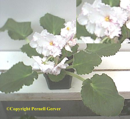 African violet: Huge, white flowers are blushed with rosy pink. The flowers have lacy edges and are held in clusters above medium-green, ruffled leaves. - A live plant in a 3" pot - $12 each or 3 for $34.20 - You save $1.80!