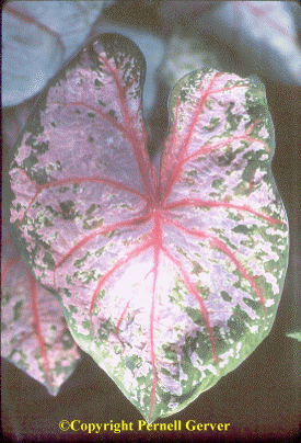 Heart-shaped, pale-pink leaves have prominent, rose-red veins. Splotches of green mark the leaves and form a thin, green border around the leaf edges. - $12 each or 3 for $34.20 - You save $1.80!