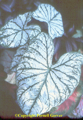 Large, arrow-shaped, bright-white leaves are distinctively marked with deep-green veins. This is a very large variety, easily reaching several feet tall with leaves up to a foot long. - $12 each or 3 for $34.20 - You save $1.80!