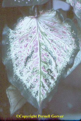 Arrow-shaped leaves on this variety are splashed with pink and green, set off by pale-green veins. A wide border of deep green surrounds each leaf. - $12 each or 3 for $34.20 - You save $1.80!