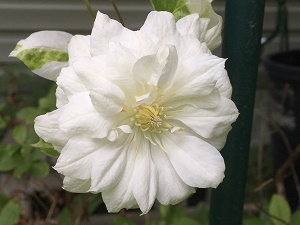 One of the best double-flowered clematis. Blooms on old and new wood.