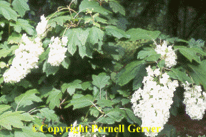 showy, oak-like leaves and bears tall clusters of white flowers.