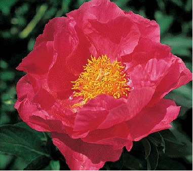 Peony 'Flame: 26" A single row of outer petals surrounds a tight cluster of golden-yellow stamens. The flowers are scarlet red and really stand out against the foliage. It blooms in mid spring. A live plant - $35 on sale for $30