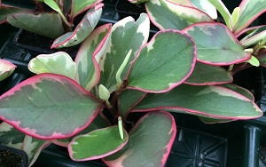 Peperomia Belly Button (Peperomia verticillata) - to 10", This peperomia has thickened leaves held in whorled clusters. The leaves are bright chartreuse green with a pink undersides. The stems grow upright at first, but eventually trail downward as they grow longer. The stems are covered with downy hairs. It's a very easy-to-grow plant. A live plant in a 3" pot - $15 each or 3 for $42.75 - You save $2.25!