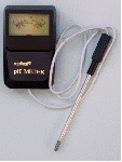This pH meter instantly reads soil pH. The separate probe makes it