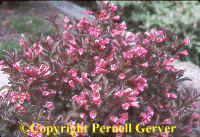 'Wine and Roses': 4-5', A new late-spring-blooming shrub with outstanding attributes. It grows four to five feet high and wide and forms an attractive mound. It has deep-burgundy foliage that stands out in the landscape. Bright, rose-pink, tubular flowers combine nicely with its dark leaves for a striking display. A live plant in a 3" pot - $25 each or 3 for $71.25 - You save $3.75!